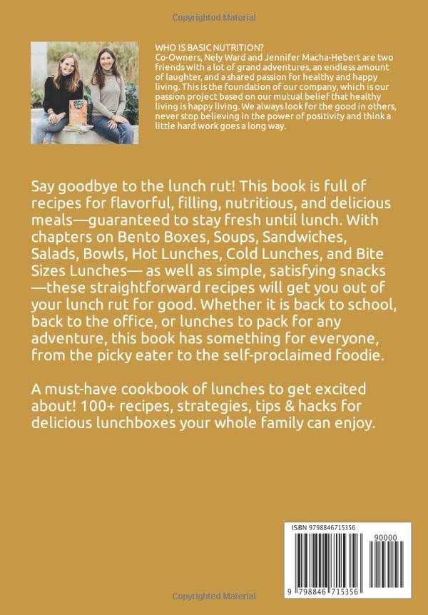 Say goodbye to the same boring, limited lunch rotation, and make lunch something everyone looks forward to! Full of a variety of recipes for flavorful, filling, nutritious, and delicious meals—guaranteed to stay fresh until lunch. From picky eaters, to self proclaimed “foodies” there is something in here for everyone. With chapters on Bento Box Lunches, Sandwiches, Bowls, Salads, Hot Lunches, Cold Lunches, and Bite Sized Lunch—as well as simple, satisfying snacks—these straightforward recipes will get you out of your lunch rut for good.