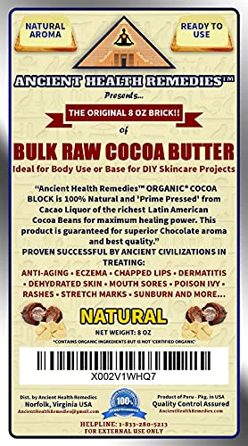 Organic Unrefined Raw Cocoa Butter: Contains natural cocoa butter for moisturizing and nourishing skin.