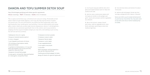 A concise overview of Ayurveda that covers its historical roots, concepts, and various healing methodsA 3-week Ayurveda plan for beginners to introduce Ayurvedic concepts into one’s lifestyle gently and practicallyA wide range of Ayurveda techniques such as recipes, yoga, aromatherapy, meditation, seasonal cleanses, and moreA simple dosha quiz and in-depth descriptions of each dosha