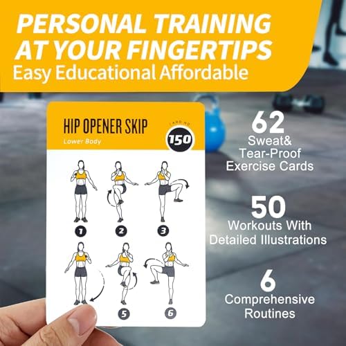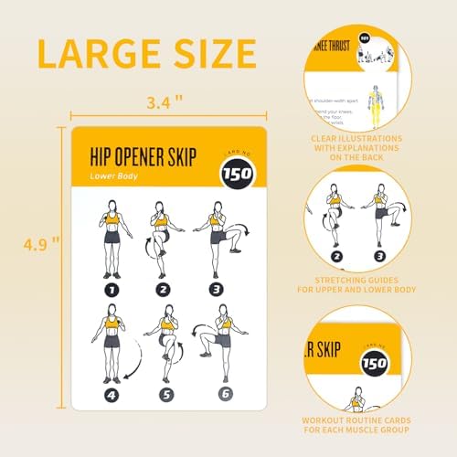 Large Size: These 3.5″ x 5″ jumbo workout routine cards are easy to see from a distance without squinting, portable and compact, the exercise cards will go with you everywhere or at home workout
