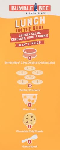 PROTEIN SNACK OR LUNCH: This delicious Bumble Bee chicken salad with crackers kit is a good source of protein (See product packaging for nutrition information)