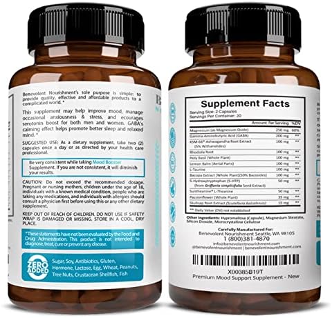 Formula You Can Trust: With Benevolents natural Mood Booster, rest assured that you’re getting a superior quality supplement formulated in the USA under strict GMP guidelines. This gluten-free and non-GMO supplement is safe and tested for purity and potency by a third party laboratory.