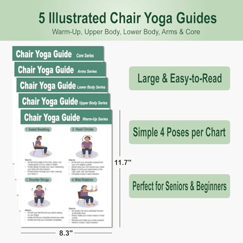 Chair Yoga Poster for Seniors & Beginners – Set of 5 Illustrated Guides & 5 30-Day Challenges, Laminated Gentle Seated Exercise Charts for Mobility, Balance, Flexibility, Stretching & Home Fitness