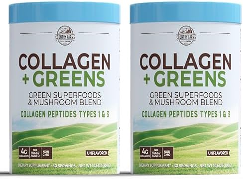 ENERGIZING, MINERAL-RICH FORMULA. Country Farms Collagen + Greens provide a combination of alkalizing, and mineral-rich green superfoods to help support natural detoxification to look and feel your best every day.