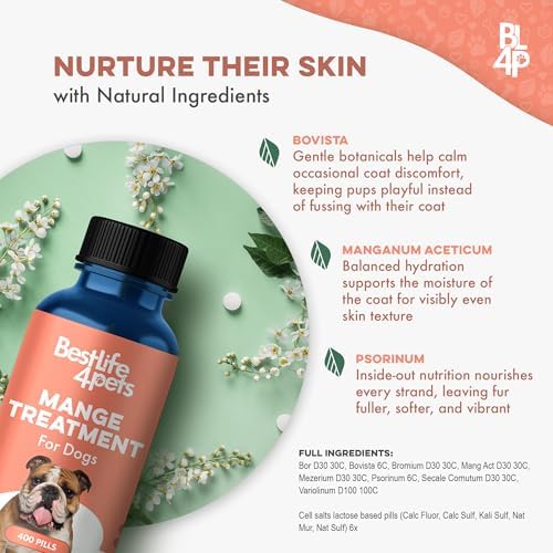 All-Natural Formula: Unlike other dog supplements that contain artificial ingredients, our homeopathic remedies are safe and effective. Buy confidently knowing that our BestLife4Pets Mange Support for Dogs formula is made entirely with natural, gluten-free, and non-GMO intentionally blended plants and cell salts.