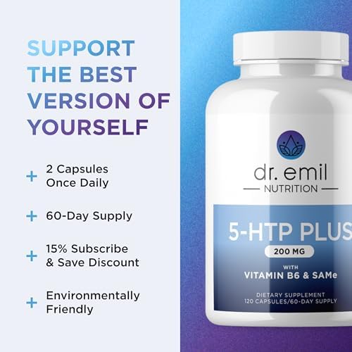 DR. EMIL NUTRITION 200 MG 5-HTP Plus with SAM-e for Mood, Stress, and Sleep – 5HTP Supplement with Vitamin B6-120 Vegan Capsules, 60 Servings