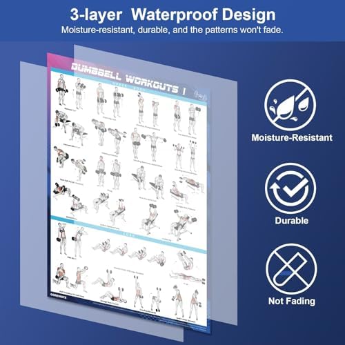 WATERPROOF DESIGN – The dumbbell exercise posters for home gym workouts are designed with protective films that resist moisture, prevent pattern fading, and ensure long-lasting durability.