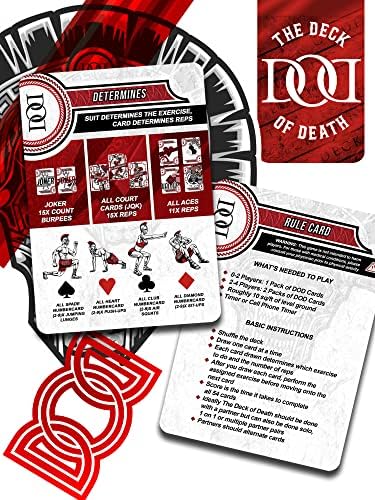 The Deck of Death: Your Ultimate Fitness Companion for everyone from Elite Athletes to busy parents looking for On-the-Go Training. Take your fitness journey to the next level with The Deck of Death, the ultimate workout tool designed for fitness enthusiasts, CrossFit athletes, and anyone looking to stay in shape at home or while traveling. This versatile and compact fitness deck is perfect for all levels, from beginners to seasoned pros, providing a challenging and engaging workout that targets every muscle group. Key Features: 1. Endless Workout Variety: The Deck of Death offers a unique and fun way to mix up your fitness routine. With 54 cards, each featuring a different exercise or combination, you’ll never do the same workout twice. Whether you’re focusing on strength, endurance, or agility, this deck covers it all, making it a must-have for anyone serious about their fitness goals. 2. Scaleable Workouts: If you’re into functional fitness and body weight workouts, The Deck of Death is your new best friend. The exercises are tailored to mimic the intensity and variety of a WOD (Workout of the Day), challenging your body in new and dynamic ways. From burpees and squats to push-ups and lunges, this deck will push your limits and help you achieve new personal bests. 3. Perfect for At-Home Workouts: No gym? No problem! The Deck of Death is ideal for at-home workouts, requiring minimal space and no equipment. Whether you’re in your living room, backyard, or garage, you can get a full-body workout that will leave you sweating and satisfied. It’s the perfect solution for busy schedules or when you can’t make it to the gym. 4. Travel-Friendly Design: Stay fit on the go with The Deck of Death. Its compact and portable design makes it easy to take with you wherever you go. Whether you’re on vacation, a business trip, or just out of town, you can maintain your fitness routine without skipping a beat. Just toss it in your bag, and you’re ready to work out anywhere, anytime. 5. Engaging and Motivational: Working out doesn’t have to be boring. The Deck of Death turns fitness into a game, keeping you motivated and engaged. The element of surprise adds excitement to each session, making it easier to stick to your routine and stay committed to your goals. Why Choose The Deck of Death? Designed for versatility and convenience, The Deck of Death is more than just a workout tool—it’s a fitness game-changer. Whether you’re looking to build strength, increase endurance, or enhance your overall fitness, this deck delivers. It’s perfect for anyone seeking a fun, effective, and flexible workout solution, whether you’re at home, at the gym, or on the road. Get your Deck of Death today and take control of your fitness journey. Embrace the challenge, push your limits, and see results like never before. Perfect for CrossFit, at-home workouts, and travel, this is the only fitness tool you’ll ever need.