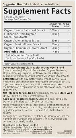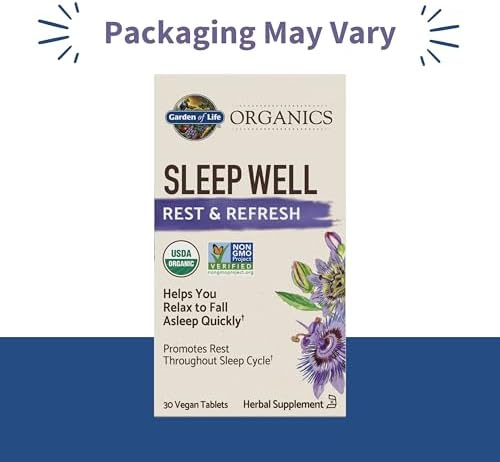 Garden of Life Organics Sleep Well Rest & Refresh 30 Tablets, Lemon Balm, Green Tea Extract L-Theanine, Valerian Root, Chamomile, Probiotics-Organic Non-GMO Vegan Gluten Free Herbal Supplement