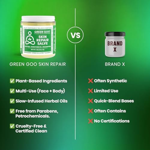 DAILY WHOLE-BODY MOISTURIZER: Green Goo’s Skin Repair Salve is a multi-purpose, skin-rejuvenating salve and daily moisturizer that can be used on both your face and body to nourish and improve your skin’s appearance. Use nightly or after time in the sun.