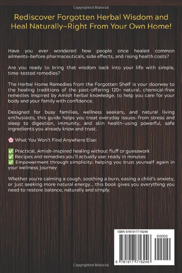 The Herbal Home Remedies from the Forgotten Shelf is your doorway to the healing traditions of the past—offering 120+ natural, chemical-free remedies inspired by Amish herbal knowledge, to help you care for your body and your family with confidence.