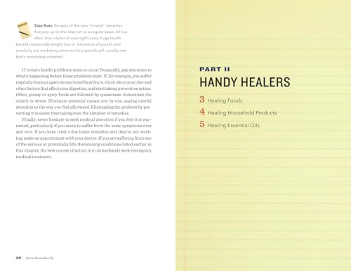 An easy-to-navigate A-to-Z reference guide to natural home remediesProfiles of more than 60 healing foods, household products, and essential oilsEffective home remedies to treat more than 100 common ailments and address your beauty and wellness needsDIY treatments for prenatal, infant, and child-age ailmentsNatural home remedies to help your pets stay healthy tooSave time, money, and trips to the doctor’s office with this handy guide to home remedies.