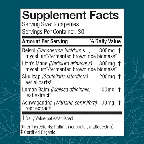 Herbal Mushroom Supplement to Aid Calm: As a dietary supplement, take 2 relaxation capsules once daily with food or on an empty stomach, or as recommended by your healthcare advisor*