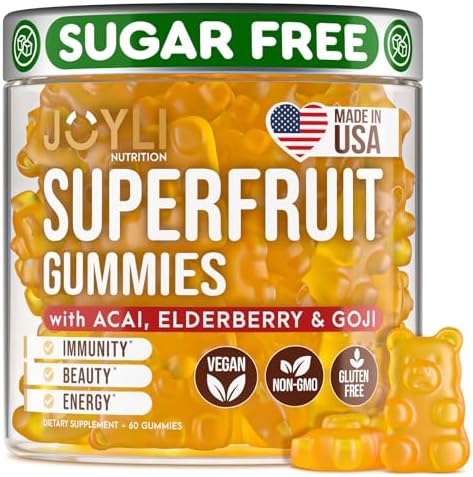Joyli Superfruit Gummies – Sugar-Free Fruit Multivitamin Gummies for Adults – Natural Gummy Vitamins for Women & Men with Goji, Elderberry, Vitamins A, C, D & E – Supports Immunity, Digestion & Energy