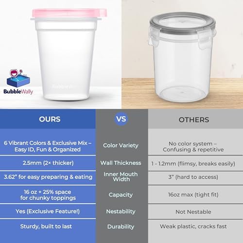 More Room, Less Mess: Holds a full 16oz with extra 25% space for chunky fruits, mix-ins or overnight oats expansion giving an effective 20oz capacity.