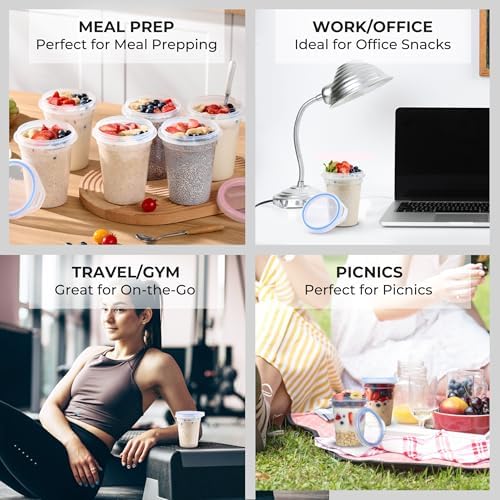 Perfect for On-the-Go Breakfasts – Start your day with ease using our overnight oats containers with lids, ideal for prepping as reusable snack containers with lids, small fruit cups, or to go smoothie cups ahead of time.