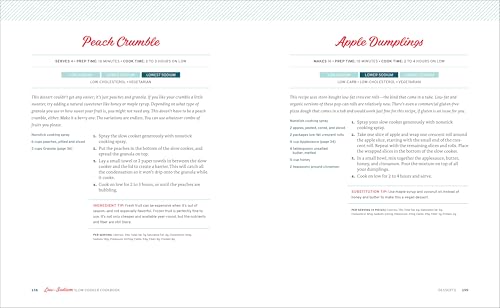 Flavor-first recipes that use salt-free alternatives to keep the taste of your favorite familiar meals, plus a guide on how to create your own seasonings.Fast, easy prep that requires no additional steps and takes only 30 minutes or less to prepare for your slow cooker.Over 100 low-sodium recipes, each with a sodium scale to help you easily track your daily intake.