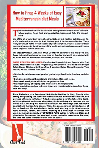 Intro to meal prep―Get expert advice on making wholesome, delectable meals in advance, including the basic principles of healthy prep, a list of must-have kitchen equipment, and ingredients.Guess-free guidance―Take the guesswork out of what to eat with detailed shopping lists and colorful illustrations for essential equipment and grocery shopping tips.Prepped for success―The 4 week-long meal preps are simplified to keep your kitchen time down, including suggestions for every meal, as well as step-by-step cooking instructions.Storage & safety tips―Master the art of food storage with helpful pointers on grab-and-go containers, foods that don’t freeze well, thawing and reheating prepared meals, smart labeling, and more.Delicious Mediterranean Recipes―Enjoy a taste of the Mediterranean with a fine selection of 50 delicious, nutritious recipes, including nutritional labels and colored images.