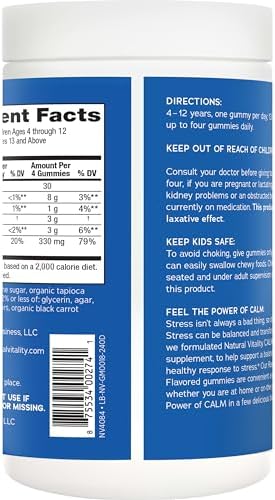 Natural Vitality CALM Gummies are a convenient, delicious magnesium supplement to help support a balanced mood and a healthy response to stress (1). Natural CALM magnesium supplements help support over 300 cellular processes in your body, including maintaining cardiovascular health, brain and nervous system function, and healthy bones and muscles (1). Help manage stress, release tension from your body, and calm your mind with these chewable magnesium supplements (1). Vegan, gluten-free ingredients combine in these magnesium citrate gummies to create a flavorful raspberry lemon taste. CALM Natural Vitality magnesium supplements contain no artificial flavor or synthetic color. (1) These statements have not been evaluated by the Food and Drug Administration. This product is not intended to diagnose, treat, cure or prevent any disease.