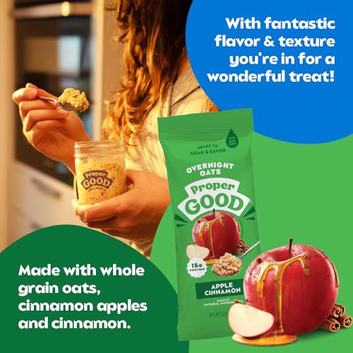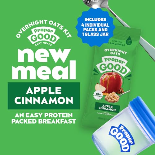 4 Protein-Packed Servings: Each pack includes 4 individually portioned servings, each delivering 15g of protein for a convenient and satisfying breakfast on the go. Use with the Proper Good Jar, perfectly sized, crafted from durable glass, and dishwasher safe, for a wholesome and effortless meal anytime.