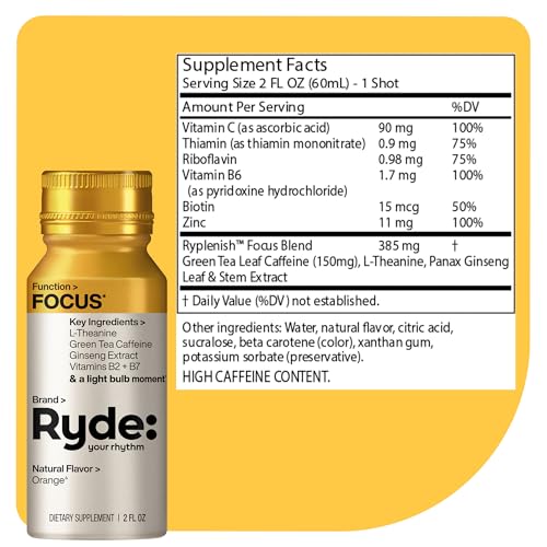 💡GO FROM DISTRACTED TO FOCUSED: Ryde: FOCUS includes our smartly formulated combination of ingredients including L-Theanine & Green Tea Caffeine – designed to help you focus just when you need to*