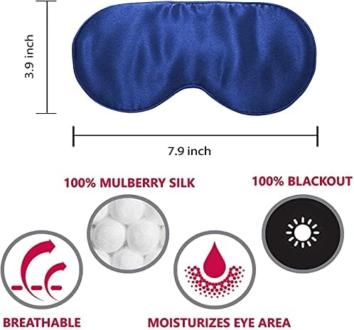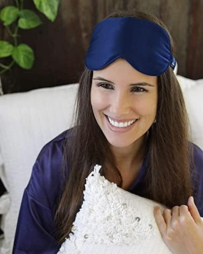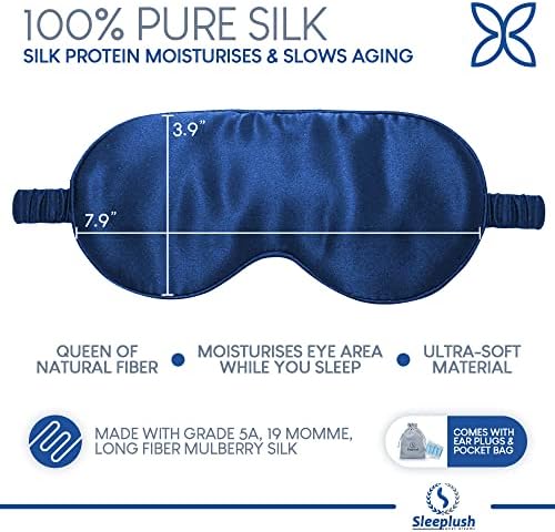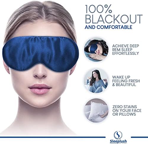 Sleeplush Mulberry Silk Sleep Mask – Sleep Mask with Silk Covered Straps – Sleep Masks for Women and Men – Eye Mask for Sleeping Comes with Ear Plugs and Pocket Bag – Weighted Sleep Mask – Blue