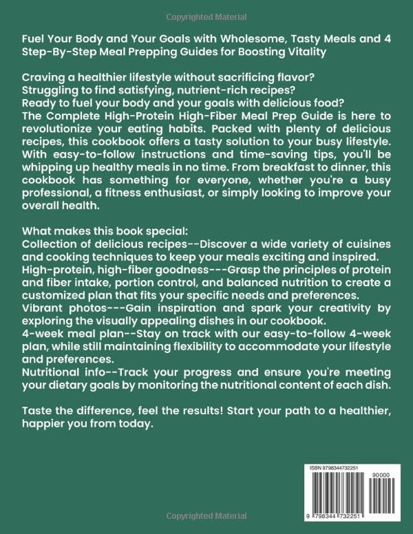 The Complete High-Protein High-Fiber Meal Prep Guide is here to revolutionize your eating habits. Packed with plenty of delicious recipes, this cookbook offers a tasty solution to your busy lifestyle. With easy-to-follow instructions and time-saving tips, you’ll be whipping up healthy meals in no time. From breakfast to dinner, this cookbook has something for everyone, whether you’re a busy professional, a fitness enthusiast, or simply looking to improve your overall health.