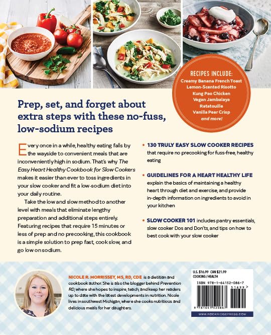 To maintain a low-sodium diet, you need a heart healthy cookbook with recipes that are simple, quick, and convenient to fit into your everyday routine. The Easy Heart Healthy Cookbook for Slow Cookers makes low-sodium meals easier than ever with prep-and-go recipes for your slow cooker. Prep meals in 15 minutes or less―with no additional steps―and discover how simple it is to fit low-sodium meals into your schedule.