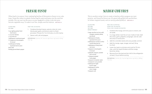 Whole foods―Nourish yourself with vegan recipes that use very few processed ingredients.Easy prep―Discover fix-and-forget recipes that only take a few minutes to prepare.Simple recipes―Explore vegan slow cooker recipes that take 5 or fewer steps to complete.