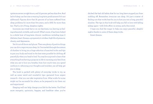 Poor sleep can wreak havoc on your waking life, leaving you grumpy and unwell. But when you’re staring at the ceiling, counting sheep, worried that sleep may never come . . . what can you do? Well, Trick Yourself to Sleep—with 222 simple strategies and creative tips, all scientifically backed: Cover up clocks (stop stressing over every restless minute)Eat two kiwis (their folates and antioxidants aid sleep)Stick out your tongue (this releases tension in the jaw)Try a weighted blanket (it’s like giving your nervous system a hug)Make a list (and then set those to-dos aside until tomorrow)! This must-have guide for even the occasional insomniac will help you fall asleep, stay asleep, and wake up your best self.