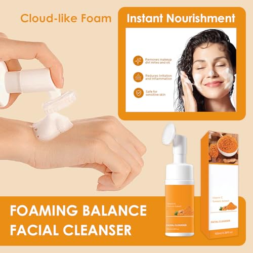 Turmeric Face Wash with Brush – Naturally Derived, Cloud-Like Foaming Cleanser